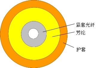SXC單芯光纜使用單根Φ900µm或Φ600µm阻燃緊套光纖作為光傳輸介質(zhì),外覆一層芳綸作為受力加強(qiáng)單元,最外擠制一層聚氯乙烯(PVC)或低煙無鹵材料(LSZH,低煙、無鹵、阻燃)護(hù)套而成。